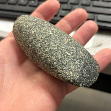 This tool is from the Neolithic Stone Age. It is approximately 5,000-8,000 years old. Neolithic tools are more shaped and polished than Paleolithic tools. They are more refined and better to use. Click here!