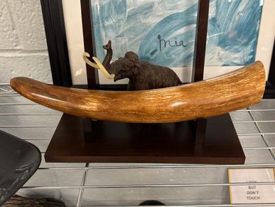 This is just the small, end segment of a woolly mammoth tusk. This finished, polished collector's piece is from eastern Europe and is over 10,000 years old. It feels like a wooden baseball bat and would hurt of it hit a person. Woolly mammoth tusks could grow as long as 14 feet long and weigh up to 300lbs. Just imagine how strong a woolly mammoth would have to be in order to hold up those tusks all day! Those huge, powerful animals would be extremely dangerous, so modern men and Neanderthals would have to plan their hunts carefully!
