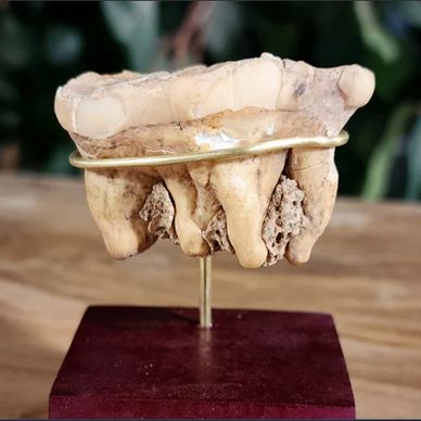 This is a real ~40,000 year old fossil cave bear molars! This was found near Transylvania, Romania! Prehistoric cave bears were around the same size as a modern kodiak bear. They went extinct approximately 12,000 year ago. Do you want to know more? Click here!