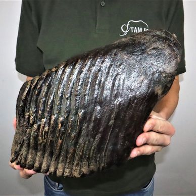 This tooth is 50,000 years old and it was found in the San River region of Poland. The tooth is 12 inches wide and weighs almost 12 pounds! It is an upper left molar from an adult mammoth. We know it comes from a fully grown adult because of its size. Mammoths had six sets of teeth throughout their lives. The mammoth who had this tooth did not die of old age because the tooth isn’t worn down. Old mammoths would die of starvation because their teeth would be worn smooth and would not be able to chew food any longer.